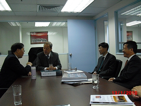 會面氣氛親切融洽:(右起)郁偉年部長、許建華副巡視員、周亦卿會長、商學鳴副會長兼秘書長