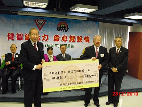 為響應諾貝爾物理學得獎者高錕博士的呼籲,本會特透過旗下"世界中華寧波總商會慈善基金"向香港聖雅各福群會的健智支援服務中心捐助港幣10萬元,以支援該中心的老人痴呆症照顧服務。