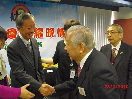 董偉副會長(右)向高錕博士伉儷握手問好。